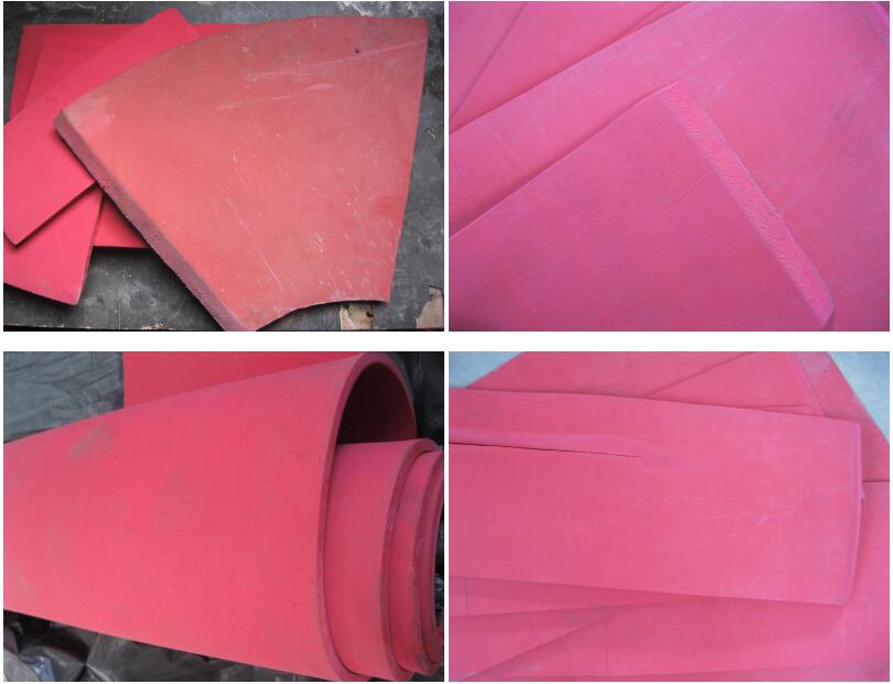 重量轻、弹性好、耐流体耐腐蚀、使用寿命长。耐磨值已大大超过了合金钢和聚胺酯。耐磨性能,回弹性能极好,而且不粘物料,还有减震和降噪音的性能。用橡胶板制成的橡胶应用在您的设备上,可使您的设备提高工作效率,大大减少维修次数,轻松管理设备,使用设备。