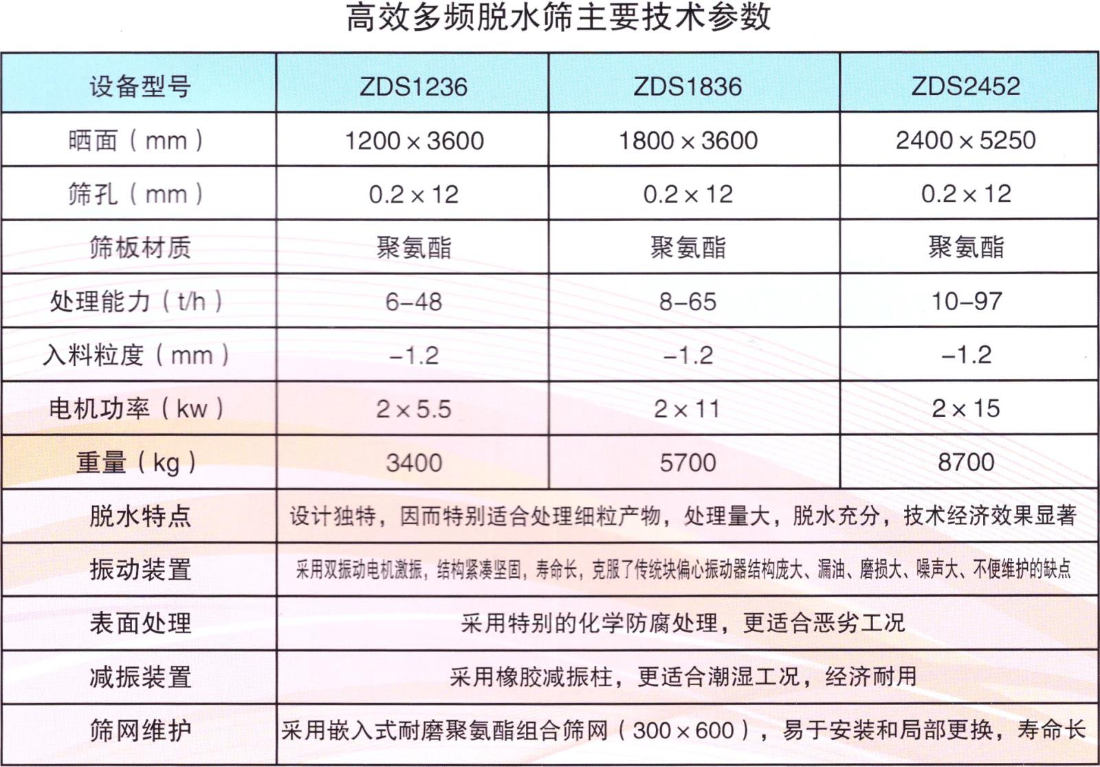 合源高效多频脱水筛在设计方面很多独特的技术,脱水筛的筛板,主要部分在水平方向向上偏转5°,筛板后部与主板成45°。 高密度的旋流器底流进入脱水筛后,马上自动形成一个较厚矿给滤层,在高频振动作用下逐步前移,待移动到排矿端后已将所有含水脱尽,滤饼即干尾矿,可外销制砖、铺路和做加气混凝土用,浓密机的溢流水可返回选厂,循环使用。
