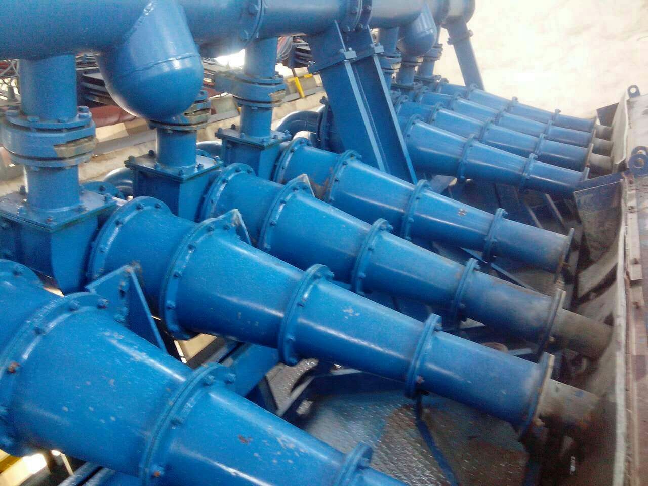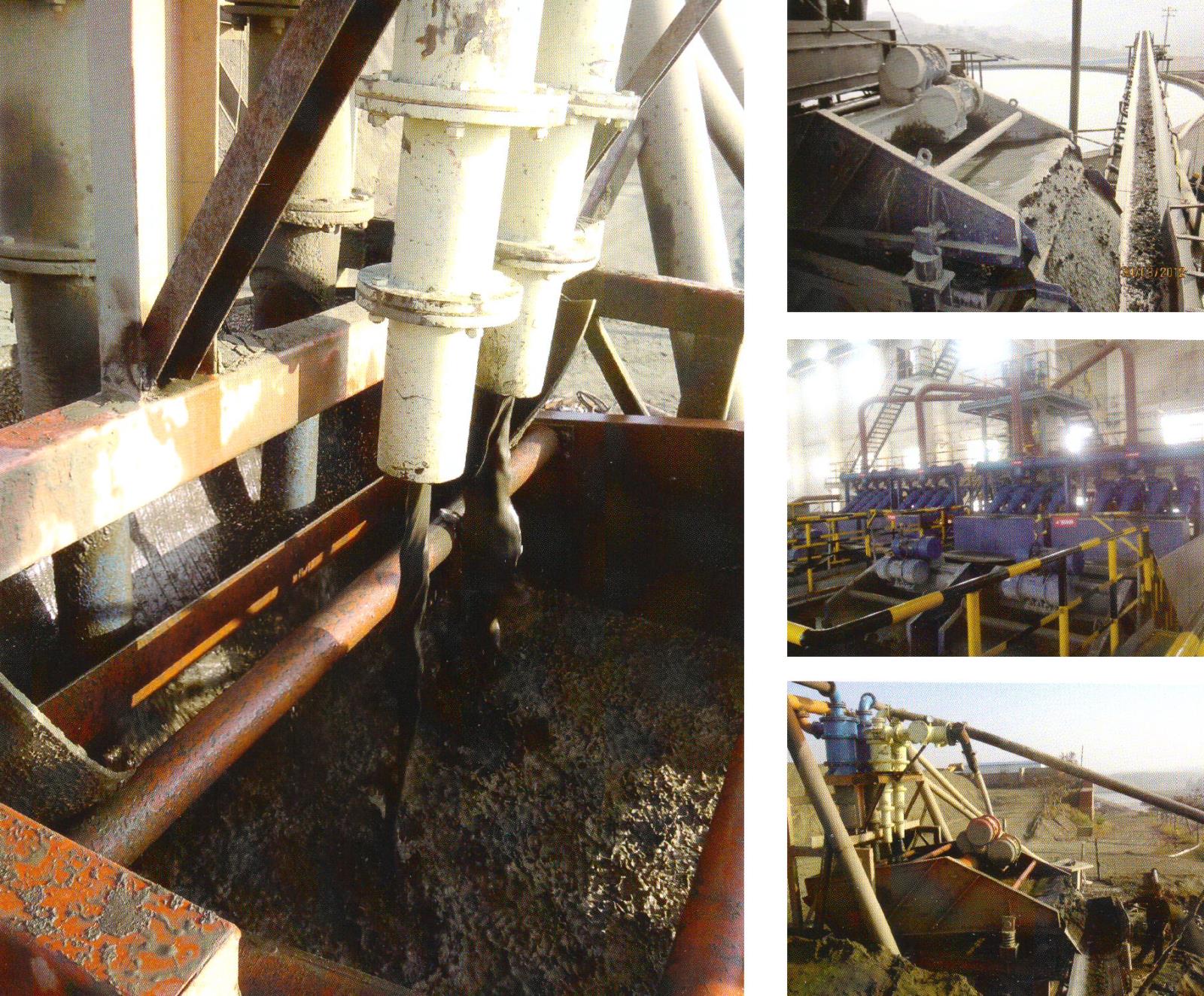 合源公司成功设计(脱水浓缩型水力旋流器+高效深锥浓密机+高频脱水振动筛)尾矿干排工艺系统。在国内矿山尾矿连续干排得到了应用及推广,极佳的效果解决了目前国内选矿厂尾矿干排的重大难题,现已成功应用于-200目80%~90%内的细度的尾矿干排,比其他脱水设备工艺节电2Kht,节省投资40%-50%,回水率达70%。