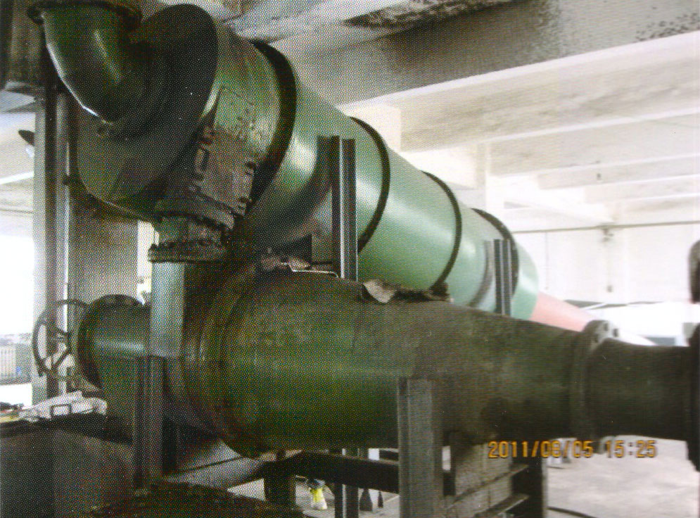 ③采用曲线给料结构,减少物料对耐磨层的冲击;
