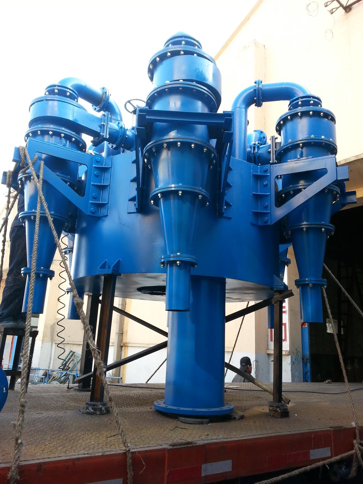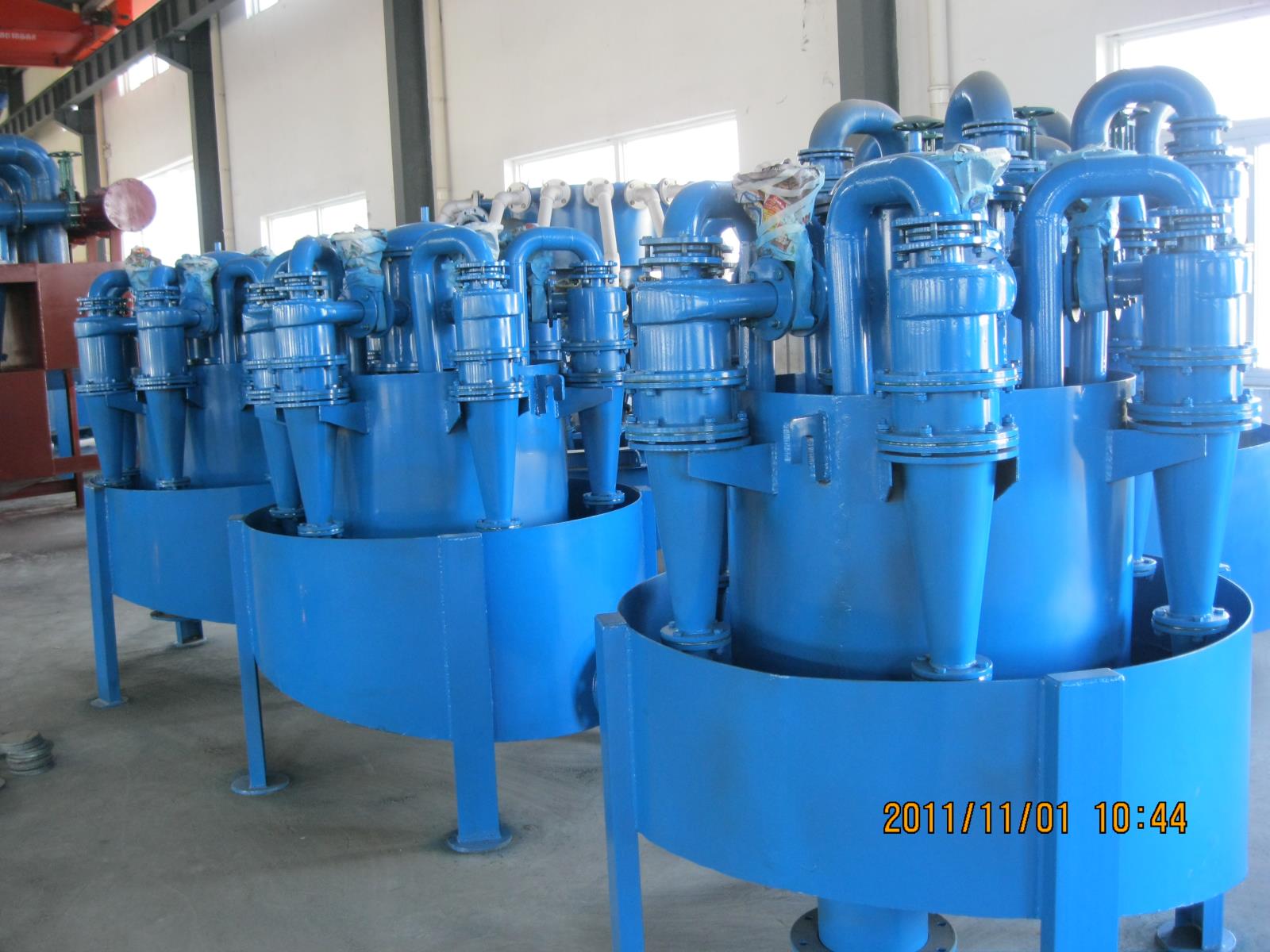 采用独特的结构设计,合理的搭配,可使旋流器的溢流细度在-200目和500目之间任意选择和调整。 旋流器通常选用碳钢内衬聚氨酯材料制作,以保证设备内表面安光洁度。